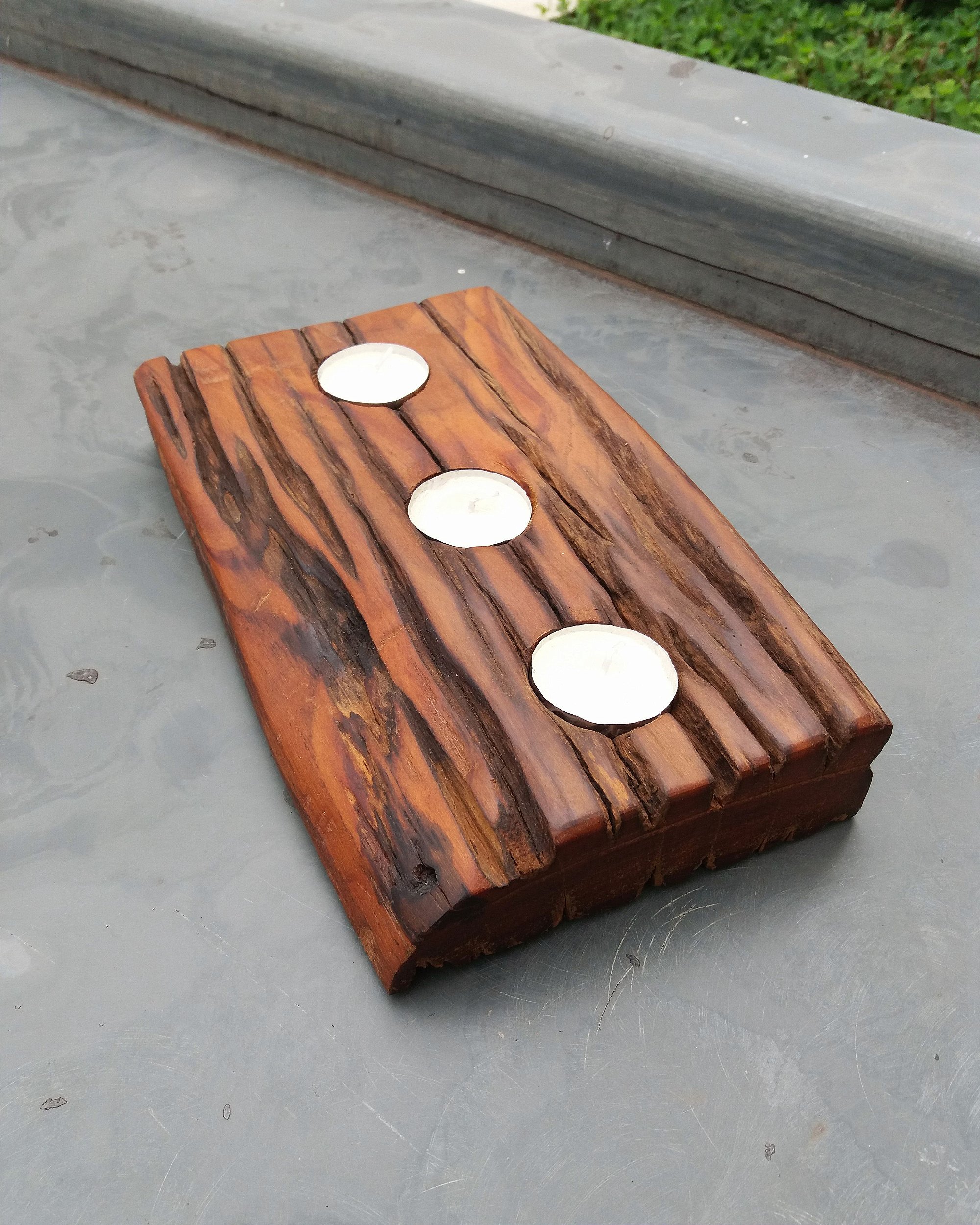 Porta velas rústico em Peroba Rosa de reaproveitamento, madeira com desenhos e ranhuras criadas naturalmente pelo tempo!