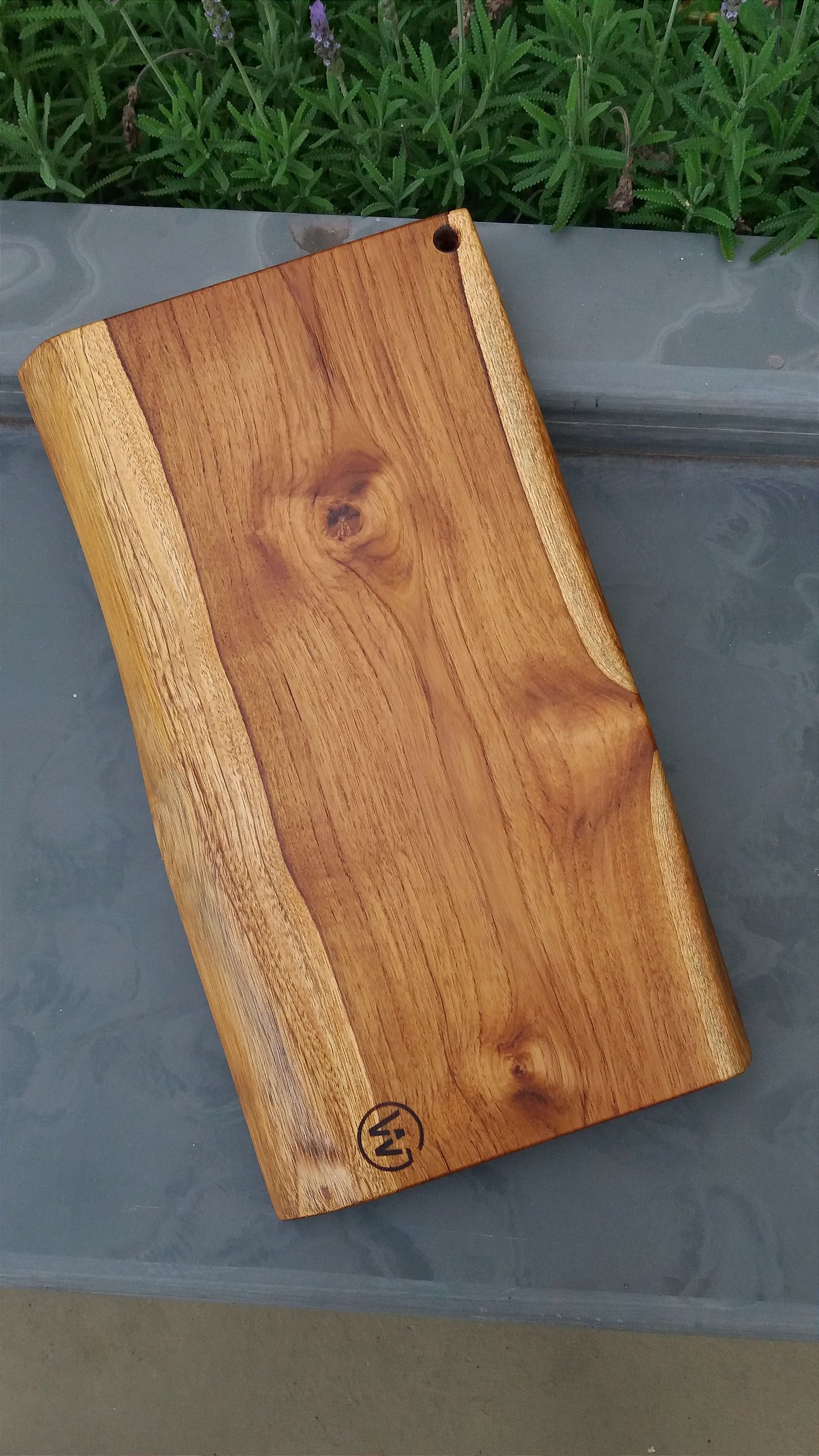 Tábua de cortar e servir em madeira Teca, com borda orgânica natural e belos traços da madeira!